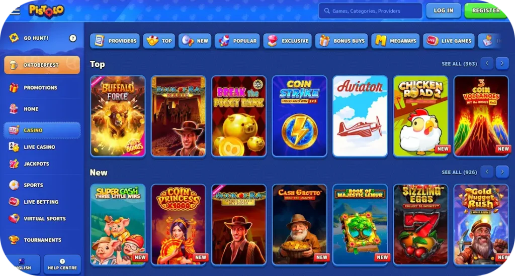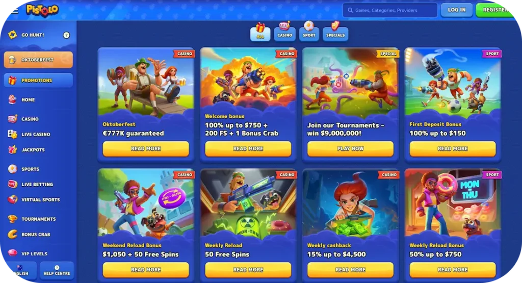 Pistolo casino has something for everyone, with over 8,850+ games available across categories like Top, New, Popular, Exclusive, Bonus Buys, Megaways, Live Games, Instant Games, Pokies, Table Games, and more. Whether you’re into spinning slots, playing cards, or chasing jackpots, there’s plenty to choose from. Take a closer look of what you can expect to get: